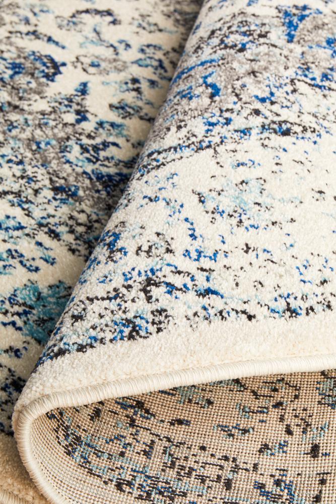 Evoke Mist White rug's gushing flower-and-vine motif induces images of meticulous crewelwork embroidery on white context and blue filled edges. Refreshingly clean and open, this richly textured power loomed pile is colored in warm autumnal hues and crafted in Turkey with artisan quality making this piece ideal in the underfoot and in high traffic scope in every adobe.