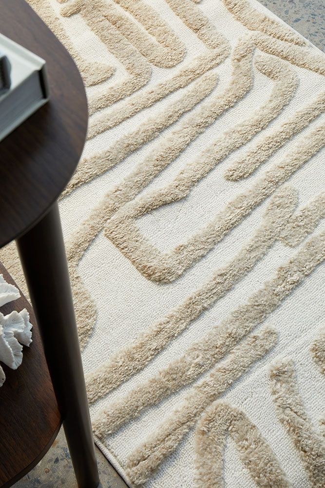 Experience contemporary elegance with the Marigold Jayla rug. Designed for modern interiors, this rug boasts a soft pile and a beige, creamy colour palette that effortlessly complements neutral decor homes. The high-low pile creates a unique textured effect, giving rise to an organic line pattern that adds depth and visual intrigue. Perfect for entryways and hallways, this runner elevates your space with modern sophistication and cozy comfort, creating a stylish and inviting atmosphere in any room.